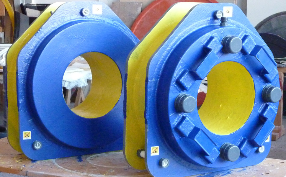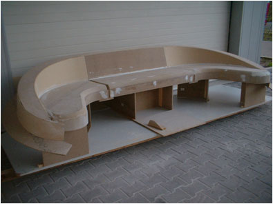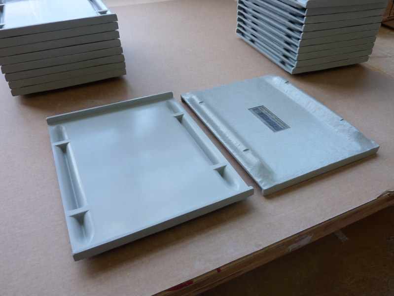 Materialinfo: 2-Komponenten-Kunststoff mit Glasfasermatten verstärkter Innenseite, schwer entflammbar, formstabil, bruchsicher 2-Component-Raisin surface with glasfibre reinforced innerside, flame resistent, dimensionally stable, shatter-proof